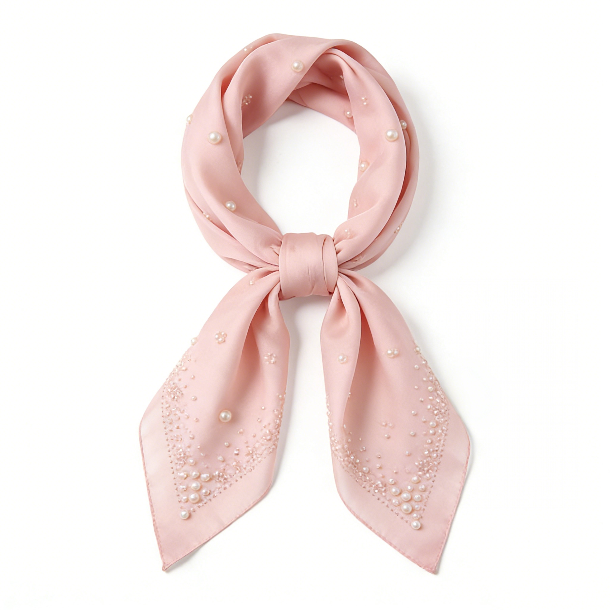 This Blush Pink Pearl Embellished Silk-Like Scarf adds a delicate, elegant touch to any outfit. Designed in a soft blush pink shade, it features a smooth, silk-like texture that drapes beautifully and feels gentle against the skin. Tiny, refined pearl embellishments are carefully added to create a subtle, luxurious detail without being over-the-top. Lightweight and versatile, it can be worn around the neck, tied to a handbag, or paired with dresses and blouses. Perfect for daily wear, dates, or casual occasions, it brings a quiet sophistication and feminine charm to your everyday look.