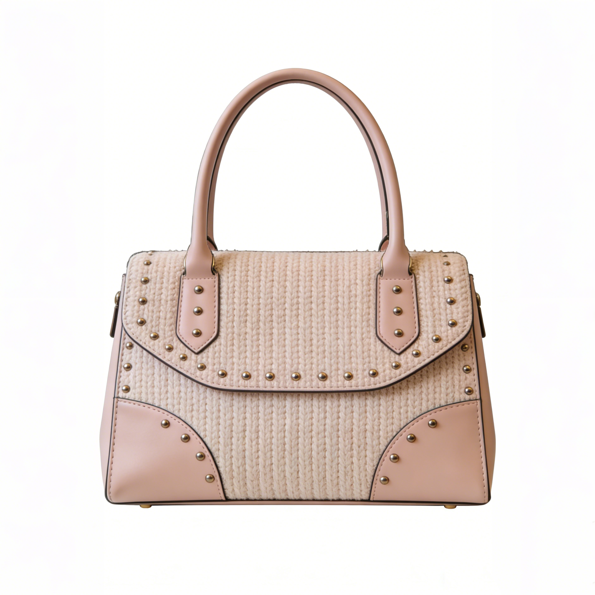 Blush Studded Straw Satchel