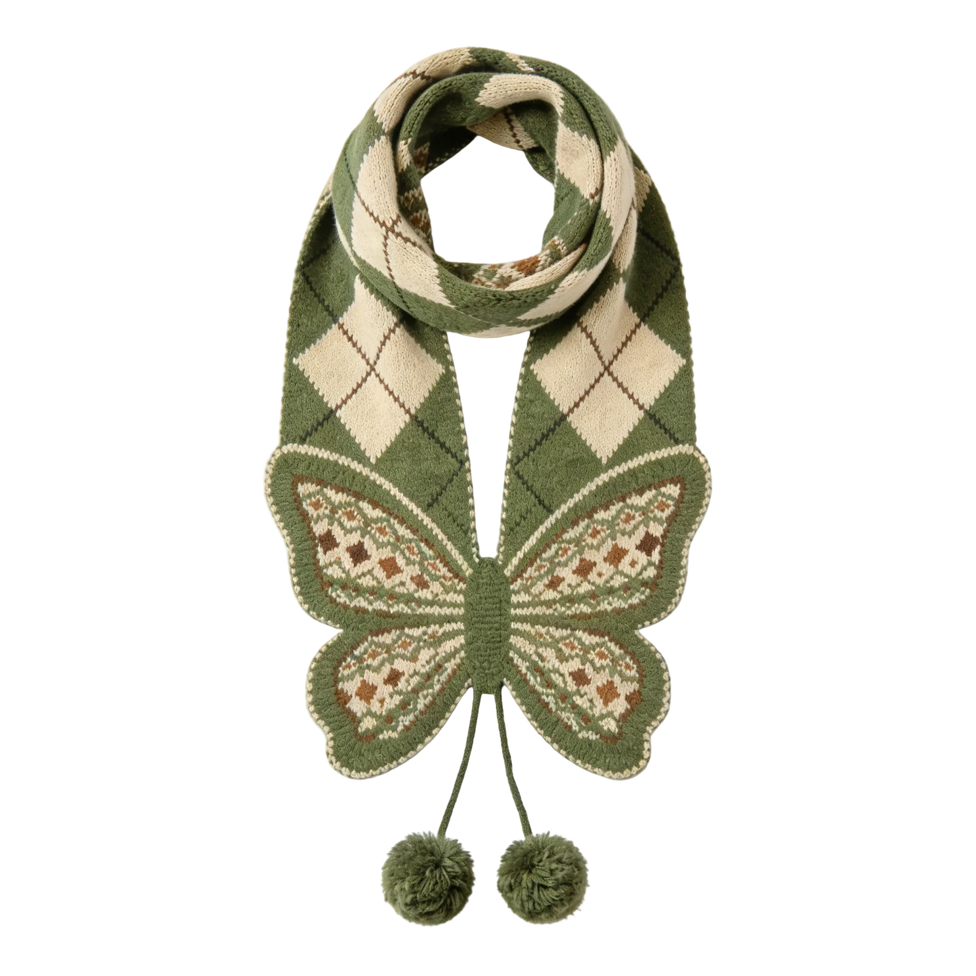 Green Butterfly Argyle Knit Scarf