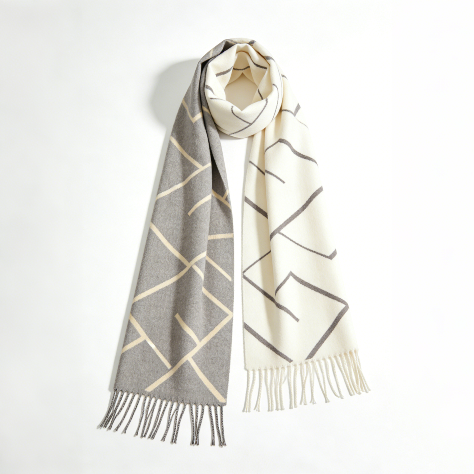 Grey & Cream Geometric Line Reversible Scarf