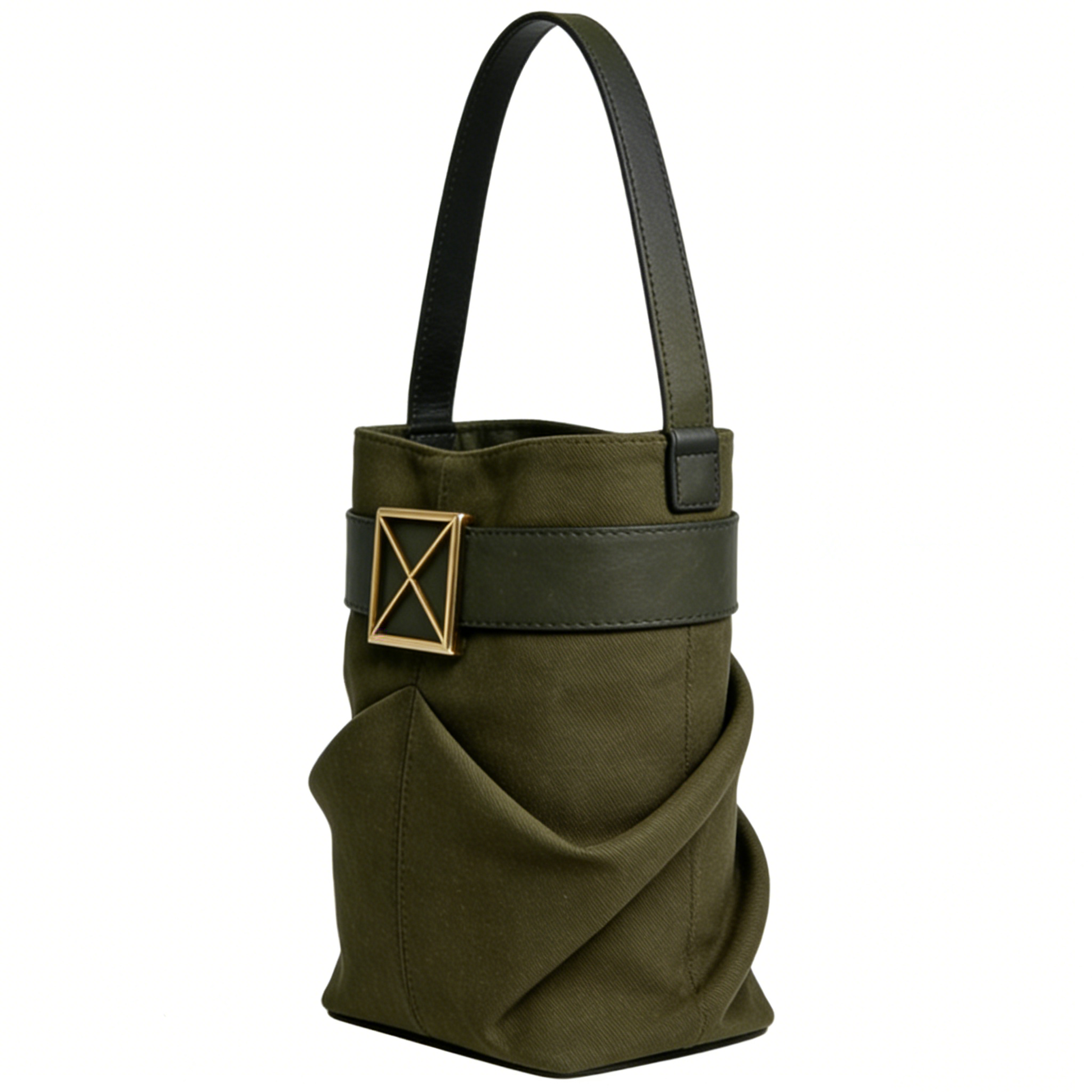 Olive Green Canvas Shoulder Bag with Metal Buckle
