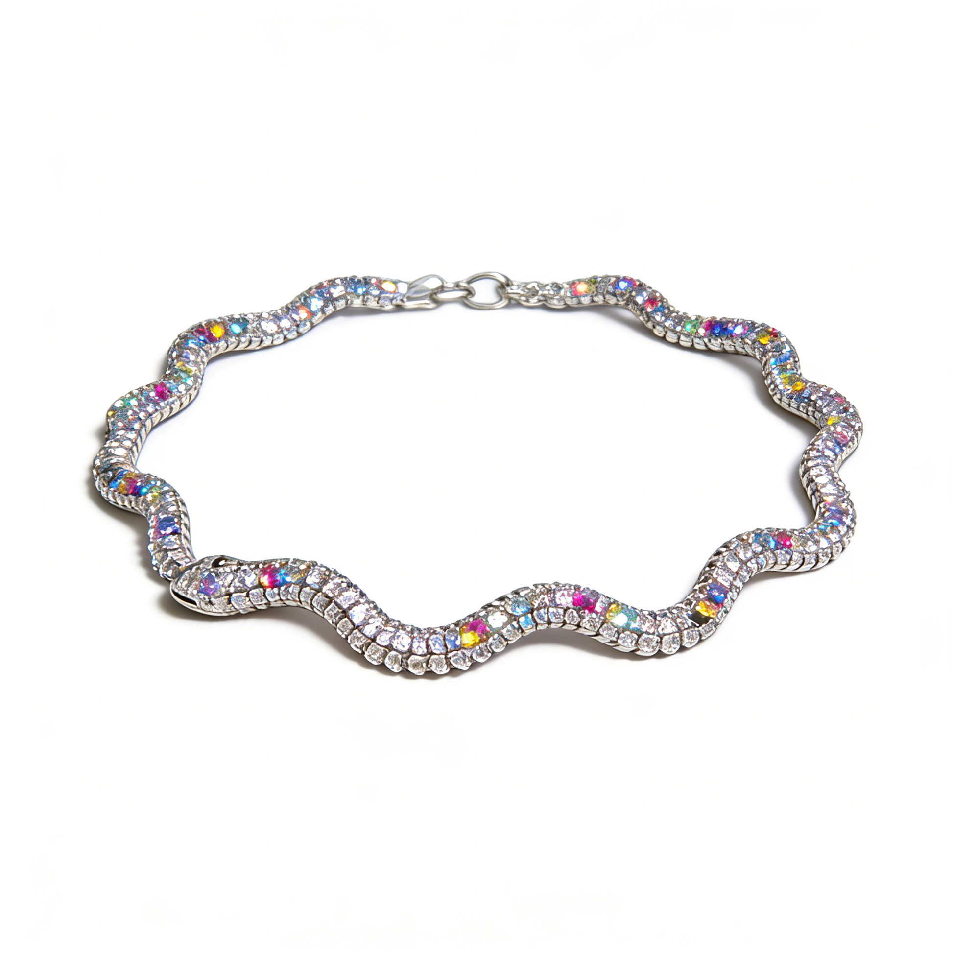 This Silver Snake Rhinestone Belt is a dazzling statement piece designed with a fixed snake silhouette, so it features a non-adjustable size—please refer to the size chart for a precise fit. Crafted with a polished silver metal base, it is inlaid with dense, sparkling clear and iridescent rhinestones that shimmer brilliantly in any light. The snake-shaped design adds a sleek, retro-chic vibe, perfectly complementing evening gowns, slip dresses, or fitted tops. As a fixed-size accessory, it ensures a snug, streamlined fit, making it an eye-catching addition to formal or glamorous casual looks.